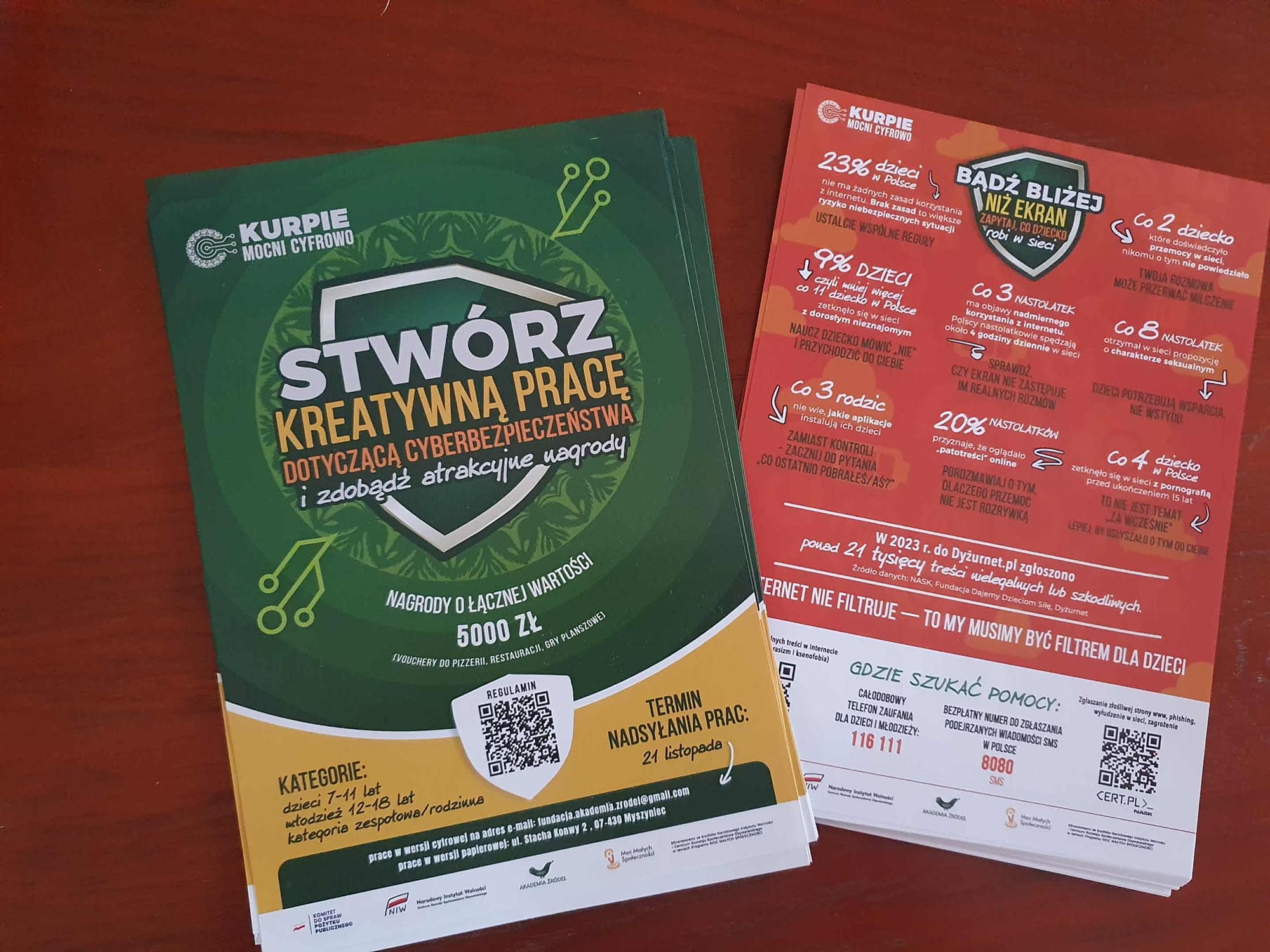 Równolegle zorganizowaliśmy konkurs na kreatywną pracę dotyczącą cyberbezpieczeństwa. Wpłynęło aż 51 prac w czterech kategoriach ( 7-11 lat, 12-18 lat, rodzinna, zespołowa” Nagrody rozdaliśmy podczas uroczystego koncertu Kurpiowskiej Akademii Smyczkowej, który odbył się w Publicznej Szkole Podstawowej w Myszyńcu.